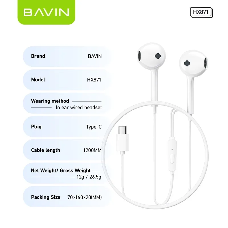 Wearing Method:ln-Ear Wired HeadsetPlug: Type-C